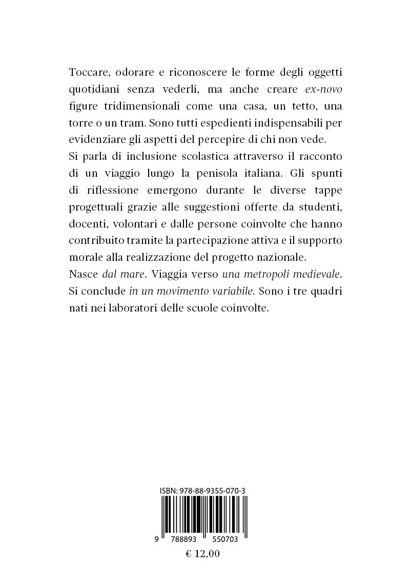 Toccare, odorare e riconoscere le forme degli oggetti quotidiani senza vederli, ma anche creare ex-novo figure tridimensionali come una casa, un tetto, una torre o un tram. Sono tutti espedienti indispensabili per evidenziare gli aspetti del percepire di chi non vede. Si parla di inclusione scolastica attraverso il racconto di un viaggio lungo la penisola italiana. Gli spunti di riflessione emergono durante le diverse tappe progettuali grazie alle suggestioni offerte da studenti, docenti, volont